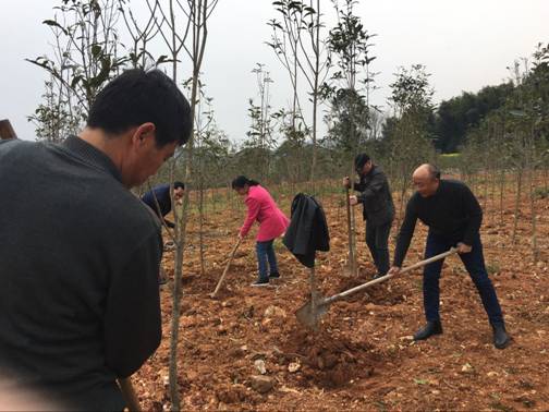 3月9日,beat365官网教工党支部在院长石正义的带领下,全体党员整装出发去往咸安区南川村开展义务植树活动,南川村是2016年中央财政林业科技推广资金支持咸宁市桂花栽培标准化示范区建设项目,这里有100亩桂花示范基地,我们一行人在咸宁市林业科学院熊胜华的指导下,有条不紊的给桂花树挖土,扶正,松土,同时清除杂草,顺利的完成了预期任务。