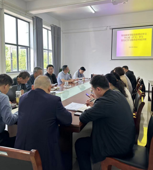 5月6日上午,beat365官方网站党委在实训楼附楼210会议室开展了党委理论学习中心组(扩大)学习暨党纪学习教育读书班开班仪式。党委第一书记樊熙参加会议并讲话,党委书记金延安主持会议,继教院全体教职工参加会议。