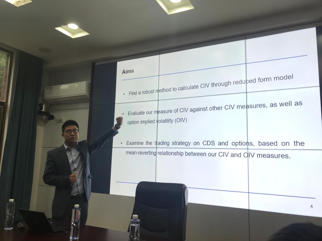 石玉坤副教授此次主要分享了新的衡量信用违约互换(CDS)的隐含波动性和相关交易策略,并鼓励大家随时提问,积极地交流。