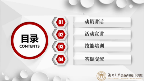 培训会分为四大板块,分别是动员讲话、活动宣讲、技能培训和答疑交流。