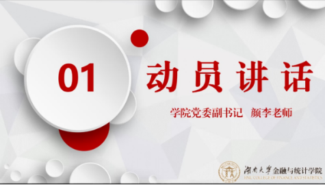 颜李作动员讲话,他强调了“三下乡”暑期社会实践及校友寻访活动的重要意义,鼓励学生落实规划、扎实推进,努力为乡村振兴战略、学院人才培养贡献力量。并对实践活动提出了两点要求。一是把好安全关,积极配合疫情防控要求,走访期间做好个人防护;二是重视宣传工作,既要“踏实做”,也要“用心讲”,传递好金统声音。
