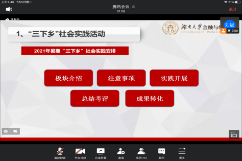 为顺利推进暑期社会实践活动开展,7月5日上午,365英国上市网站官网采取线上腾讯会议的形式举行2021年暑期社会实践活动动员培训会。学院党委副书记颜李,学院团委书记周斌、研究生辅导员刘斌以及“三下乡”暑期社会实践与专硕校友寻访活动的队伍负责人参加了本次会议。