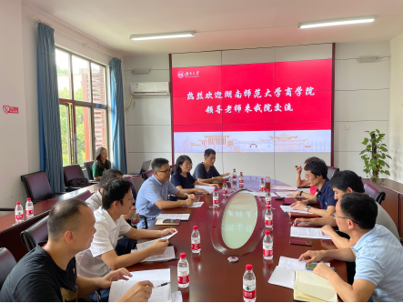 7月9日上午,湖南师范大学商学院副院长曹虹剑教授、教育部金融学类教学指导委员会委员欧阳资生教授等8人来365英国官网进行交流访问。365英国官网副院长张宁、应用金融系主任马勇、货币金融系主任喻旭兰和副主任王忠生等参加交流座谈,会议就人才培养、课程建设、教材建设、科研项目培育等事宜进行了深入探讨。