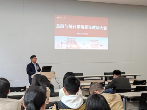2021年10月19日,365英国上市网站官网青年教师大会暨2022年国家基金申报动员会在财院校区老食堂二楼报告厅举行。会议由王修华副院长主持,院长潘敏、党委书记黄红立及全体45岁以下青年教师及辅导员等参加会议。